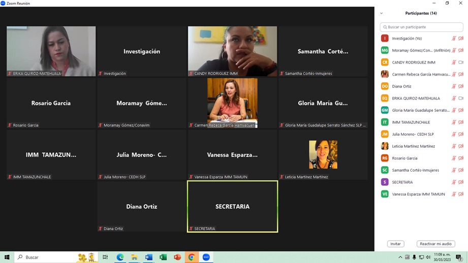 A la reunión de trabajo asistió Carmen García Hamvacuan, secretaria ejecutiva del Sistema Estatal de Protección Integral de Niñas, Niños y Adolescentes (Sipinna); María Julia Moreno Díaz de León, con la representación de Giovanna Arguelles Moreno, presidenta de la Comisión Estatal de Derechos Humanos (CEDH), Moramay Gómez Regalado, jefa de Departamento de Coordinación Técnica de la Comisión Nacional para Prevenir y Erradicar la Violencia contra las Mujeres (Conavim) y Samanta Cortés del Instituto Nacional de las Mujeres (Inmujeres).