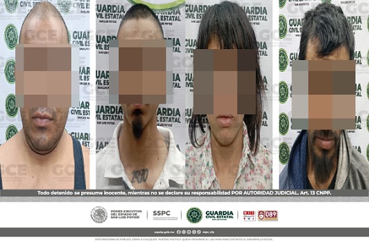S.L.P.- Reportes ciudadanos atendidos en el Sistema de Emergencias 911, permitieron que oficiales de Guardia Civil Estatal (GCE) detuvieran a cuatro personas, por el probable delito de allanamiento de inmuebles particulares, en la capital potosina y en el municipio de Soledad de Graciano Sánchez.