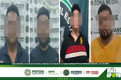S.L.P.- Derivado de la atención a diferentes reportes sobre posibles casos de violencia familiar, cuatro personas resultaron detenidas, a petición de las partes afectadas, quienes fueron auxiliadas por agentes de la Guardia Civil Estatal (GCE).