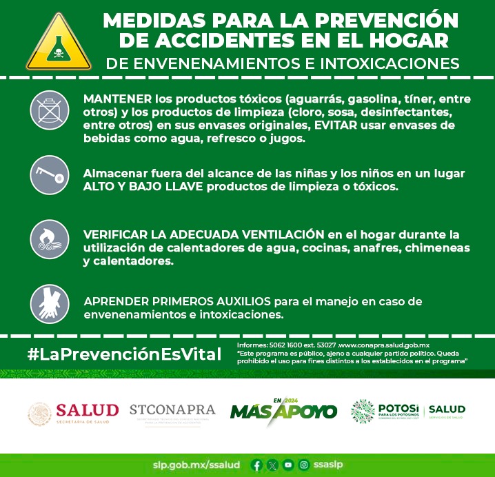 Por indicación del Gobernador del Estado de San Luis Potosí, Lic. José Ricardo Gallardo, en los Servicios de Salud encabezados por la Secretaria de Salud, Ymuri Vaca Avila se trabaja de manera continua y permanente en la capacitación y emisión de diversas recomendaciones a madres, padres y cuidadores en busca de prevenir este tipo de accidentes, sus complicaciones y afectaciones a la salud en la población infantil.