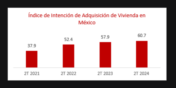 El Índice de Intención de Adquisición de Vivienda pasó de 37.9 puntos en el segundo trimestre de 2021 a 60.7 puntos en el mismo periodo de este año.