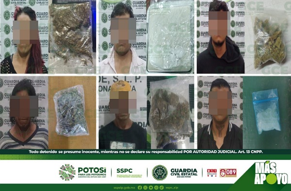 S.L.P.- Labores preventivas efectuadas por la Guardia Civil Estatal (GCE), detuvieron a 17 personas, en distintas ubicaciones, por la probable posesión de drogas, logrando inhibir la venta y/o consumo de sustancias nocivas en la entidad potosina.