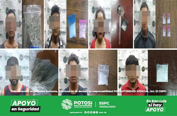 S.L.P.- Acciones para el combate al consumo de narcóticos en la entidad potosina, permitieron la detención de 10 hombres y tres mujeres, por parte de los diferentes operativos efectuados por la Guardia Civil Estatal (GCE).
