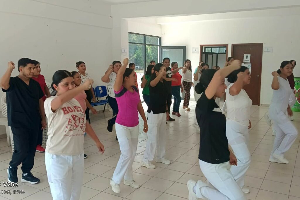 Asimismo, se llevaron a cabo sesiones de activación física para promover la incorporación del ejercicio como parte de la rutina cotidiana, destacando su importancia en la prevención de enfermedades crónico-degenerativas.