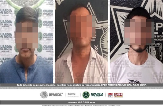 S.L.P.- Llamadas de auxilio atendidas en la Línea de Emergencias 911, permitieron que agentes de la Guardia Civil Estatal (GCE) detuvieran a tres masculinos; uno en la capital y dos más en los municipios de Ciudad Valles y Matehuala, por el probable delito de violencia familiar.