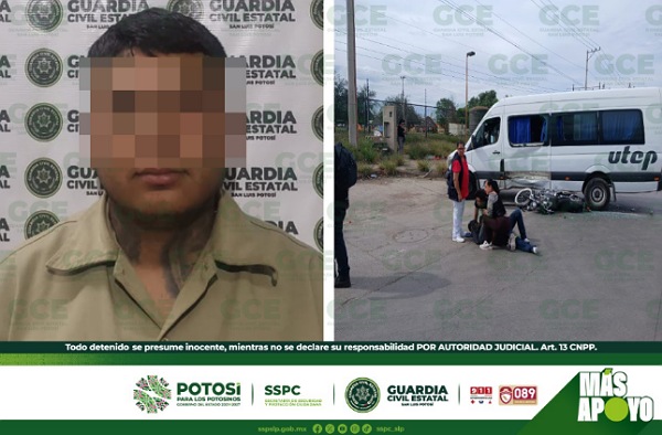 San Luis Potosí, S.L.P.- Como resultado de los trabajos operativos que desarrolla la División Caminos de la Guardia Civil Estatal (GCE), un hombre resultó detenido, por el probable delito de lesiones en un hecho de tránsito.