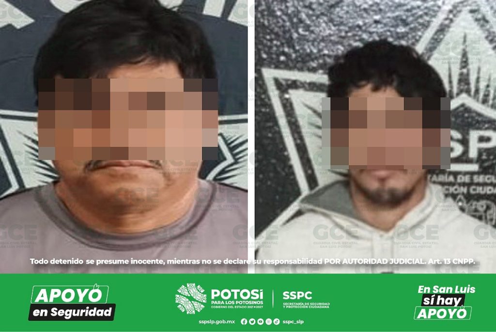 San Luis Potosí, S.L.P.- Como parte de los dispositivos de seguridad y prevención efectuados por agentes de la Guardia Civil Estatal en las cuatro zonas del estado, se aseguró a dos hombres acusados de violencia familiar.