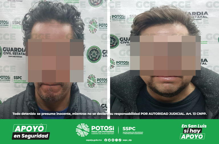 San Luis Potosí.- Como parte de los operativos de prevención efectuados por la Guardia Civil Estatal en la capital potosina, se detuvo a dos hombres acusados de violencia familiar.
