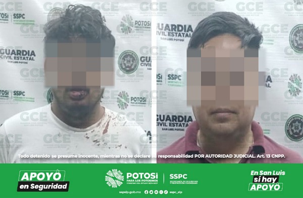 San Luis Potosí, S.L.P.- Oficiales de la Guardia Civil Estatal (GCE) detuvieron a dos hombres, tras atender reportes ciudadanos canalizados por el Sistema de Emergencias 911, en donde indicaban haber sido víctimas de violencia familiar.
