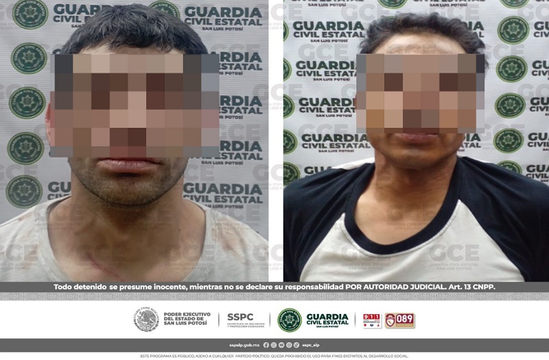 San Luis Potosí, S.L.P.- Derivado de los reportes ciudadanos de casos de violencia familiar, dos hombres resultaron detenidos por agentes de la Guardia Civil Estatal (GCE), por el probable delito de agresiones a sus cónyuges.