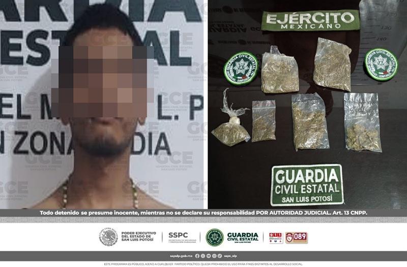 S.L.P.- Derivado del despliegue del Plan Integral de Seguridad, para el combate sin tregua al narcomenudeo, oficiales de Guardia Civil Estatal (GCE) detuvieron en diferentes acciones a dos presuntos vendedores de droga, vinculados a grupos delincuenciales, generadores de violencia en la Entidad potosina.