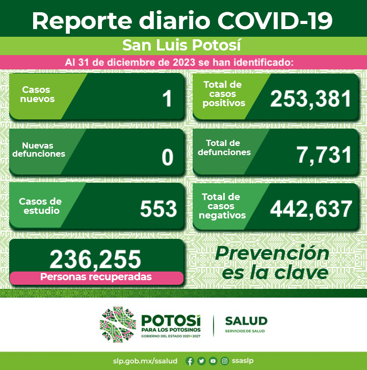 El Comité Estatal para la Seguridad en Salud y los Servicios de Salud informan que se registro 1 nuevo caso de Covid-19 en el Estado, confirmando así 253 mil 381 casos totales de esta enfermedad.