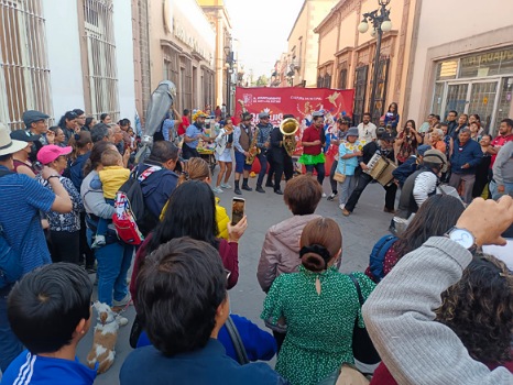 Nuevamente los talentosos artistas tapatíos de Pneumus tomaron la Plaza de Armas y la calle de Zaragoza con su Marcha Submarina, una comparsa que representa el rodaje de una película surrealista bajo el mar: claqueta, camarógrafo, cácaro, músicos, pelota playera, peces de hojalata. Una divertida reflexión sobre el problema de la contaminación de mares y ríos.