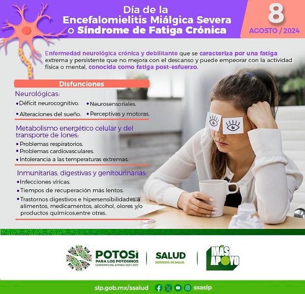 El síndrome de fatiga crónica puede ocurrir a cualquier edad, pero afecta con más frecuencia a personas de entre 40 y 50 años, incluso las mujeres reciben diagnóstico de síndrome de fatiga crónica con mucha más frecuencia que los hombres, si se detectan síntomas o signos de depresión, aislamiento social, restricciones en el estilo de vida o aumento en las ausencias laborales, es importante agendar una cita al teléfono (444) 100-92-50 o bien, acudir directamente a la Clínica Psiquiátrica “Dr. Everardo Neumann Peña”, ubicada en el Km. 8.5 de la Carretera a Matehuala en Soledad de Graciano Sánchez, S.L.P., los 365 días del año, las 24 horas del día por el área de urgencias.