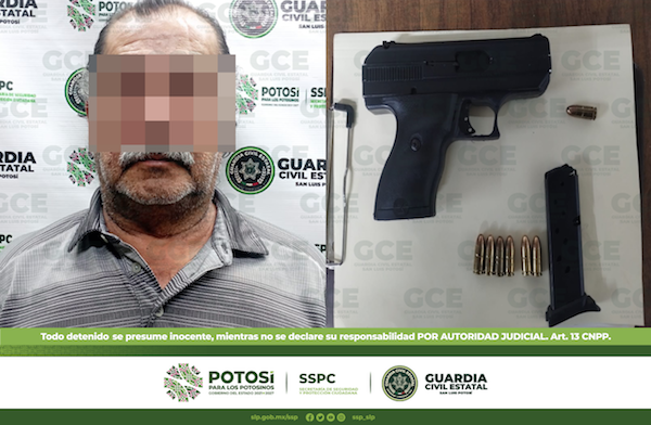 Los agentes estatales patrullaban sobre la colonia Ricardo B. Anaya Segunda Sección, cuando a la altura de la calle Ignacio Aguilar, tuvieron contacto con un individuo que parecía estar armado; de inmediato le dieron alcance y tras efectuarle una inspección preventiva, a Efraín de 58 años de edad se le aseguró un arma de fuego calibre 9 mm. y un cargador con 7 cartuchos útiles.