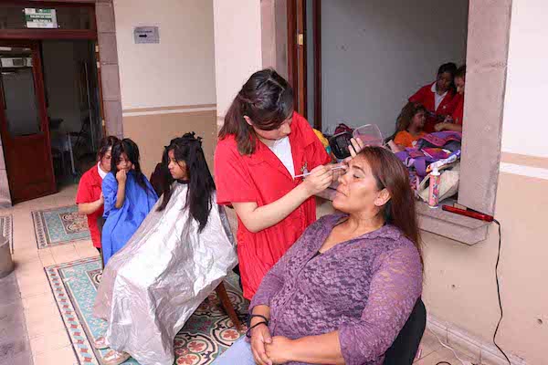 Durante el taller, las mujeres recibieron tratamientos de belleza, cortes de cabello, peinados, maquillaje y tintes, por parte de trece alumnas de la Escuela de Artes y Oficios, como parte de las acciones a favor de las mujeres, además de realizar una clase de yoga.