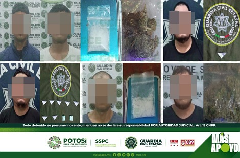 Uno de los hechos tuvo lugar en la zona centro de Soledad de Graciano Sánchez, José “N” de 35 años de edad fue asegurado con una dosis de “cristal”; así como José “N” de 34 años, quienes fueron asegurados con una dosis de “cristal”; así como Ricardo “N” de 20 años, en la colonia Hermenegildo J. Aldana, en donde fue asegurado con una dosis de “cristal”; mientras que en el municipio de Tamazunchale, Gael “N” de 18 años, fue asegurado con dos dosis de “cristal”; así como Lorenzo “N” de 39 años, sorprendido en el municipio de Xilitla, con una dosis de cocaína.