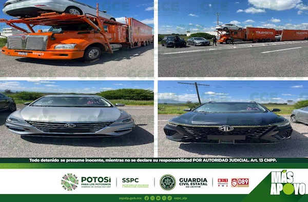 Cedral, S.L.P.- La reacción oportuna de la Guardia Civil Estatal, sobre el reporte de presuntos que habían desviado una nodriza con vehículos último modelo, permitió la localización inmediata de dicha unidad de carga, con los automotores.