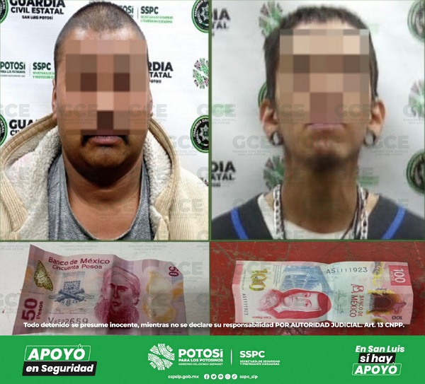 San Luis Potosí, S.L.P.- Tras intentar sobornar a los elementos de la Guardia Civil Estatal (GCE) dos hombres fueron detenidos por el probable delito de cohecho, después de hacer de su conocimiento sobre el ilícito que cometían quedaron a disposición de las autoridades correspondientes.