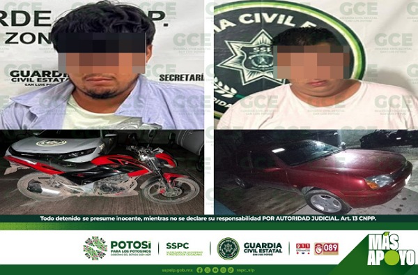 S.L.P.- Como resultado de los patrullajes de prevención, realizados por agentes de la Guardia Civil Estatal (GCE), dos automovilistas fueron detenidos, por probables delitos contra la seguridad de tránsito.