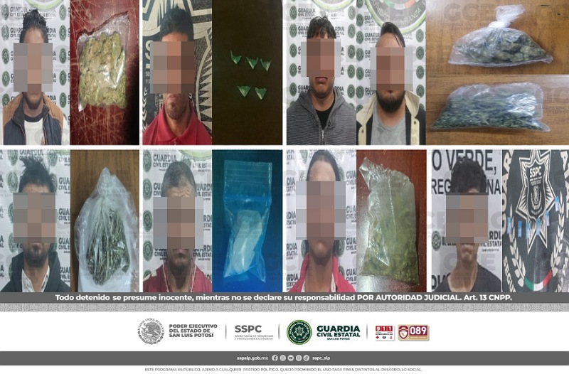 S.L.P.- Como resultado de los trabajos operativos, efectuados por agentes de la Guardia Civil Estatal (GCE) para inhibir el consumo y/o venta de narcóticos en la entidad potosina, se detuvo en las últimas horas a 15 personas por probable posesión de droga, asegurando de estos hechos 29 dosis de enervantes.