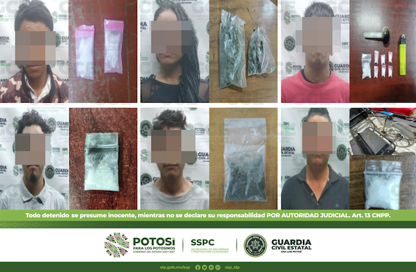 Dentro de las acciones dispuestas para inhibir el consumo de estupefacientes y su distribución en la Entidad potosina, en las últimas horas, la Guardia Civil Estatal (GCE) detuvo a 12 personas tras asegurarles droga entre sus pertenencias.