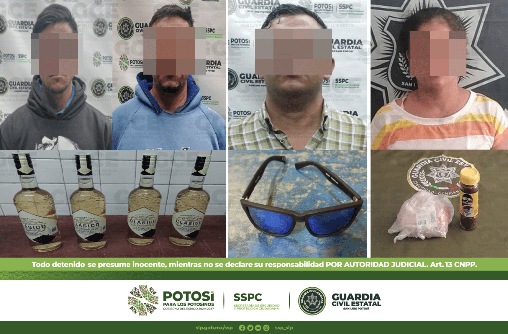 En resultado a las acciones de seguridad y prevención de delitos, en coordinación con los reportes ciudadanos atenidos en el Sistema de Emergencias 911, cuatro personas resultaron detenidas por la Guardia Civil Estatal (GCE) por el probable delito de robo.