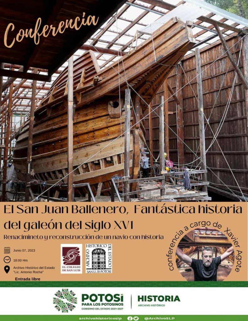 El miércoles 07 de junio, en coordinación con el Colegio de San Luis, se llevará a cabo la conferencia “El San Juan Ballenero, fantástica historia del galeón del siglo XVI”, Renacimiento y Reconstrucción de un Navío con Historia, impartida por Xavier Agote, maestro carpintero español, fundador de la Escuela Internacional de Carpintería de Ribera de Albaola, especialista en la construcción de embarcaciones históricas y de interés patrimonial.