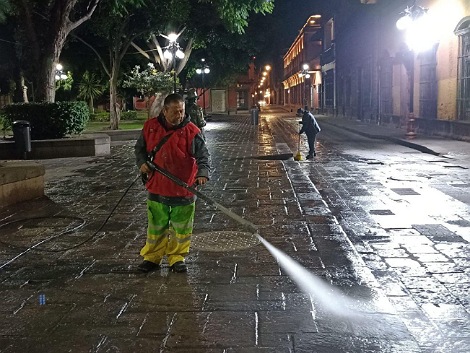 Para rehabilitar y mejorar el aspecto del área de parques y jardines, personal de la Dirección de Servicios Municipales llevaron a cabo la limpieza y mantenimiento en el jardín de San Francisco y sus inmediaciones con el equipo de hidrolavado, cuyas tareas embellecieron este sector del Centro Histórico.