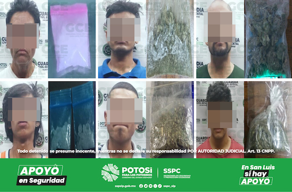 S.L.P.- En las últimas horas, policías de la Guardia Civil Estatal (GCE) detuvieron a 20 personas después de que se les aseguraran diversas dosis de estupefacientes. Los operativos tuvieron lugar tanto en la zona metropolitana como en el interior del estado.