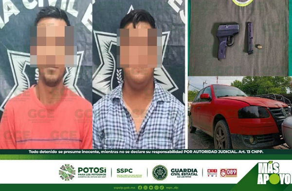 Derivado de lo anterior, se procedió a inspeccionar tanto a los masculinos como a la unidad en la que se desplazaban, logrando asegurar un arma de fuego calibre .380 y un cargador con un cartucho útil. Por estos hechos, Juan “N” de 25 años de edad y Eliot “N” de 33 años, fueron puestos a disposición de la Fiscalía General de la República.