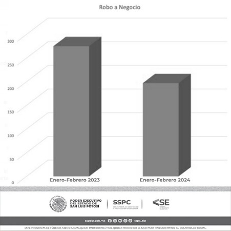 San Luis Potosí registró una disminución de hasta un 75 por ciento en los índices delictivos de robo y 27 por ciento en hechos de alto impacto, como homicidios dolosos, durante los primeros meses del año en curso en comparación con el mismo período del año anterior, de acuerdo con información del Secretariado Ejecutivo del Sistema Nacional de Seguridad Pública (SESNSP), dio a conocer el titular de la Secretaría de Seguridad y Protección Ciudadana del Estado (SSPCE), Guzmar Ángel González Castillo.