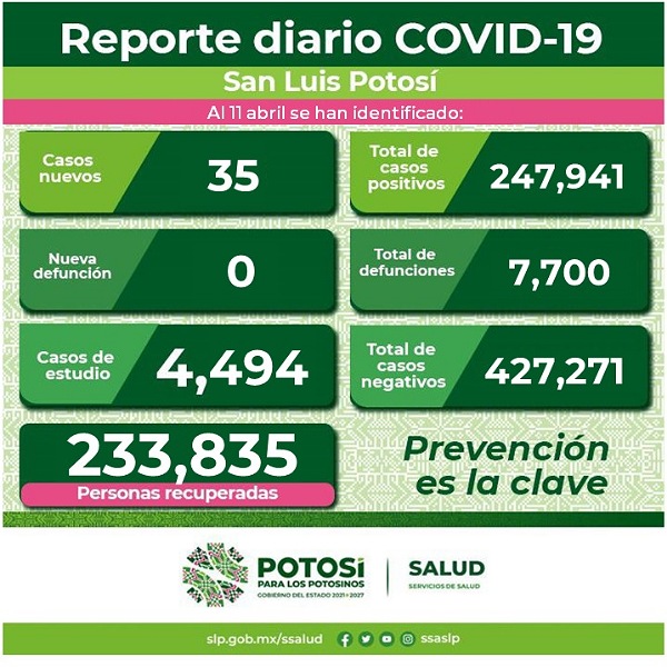 El Comité Estatal para la Seguridad en Salud y los Servicios de Salud informan que, en lo que respecta al informe diario sobre Covid-19, se confirmaron 35 nuevos contagios en la Entidad, sumando 247 mil 941 casos totales de este padecimiento.