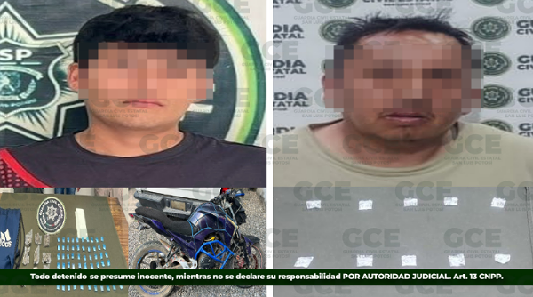 En recorridos de seguridad y vigilancia en la zona Huasteca, se detuvo a Jairo “N” de 19 años, quien llevaba consigo 62 dosis de “cristal” y nueve dosis de marihuana, además de una motocicleta Italika 250Z color morado, luego de ser interceptado en la carretera estatal Mecatlán-Atlajque, en el municipio de Tamazunchale.
