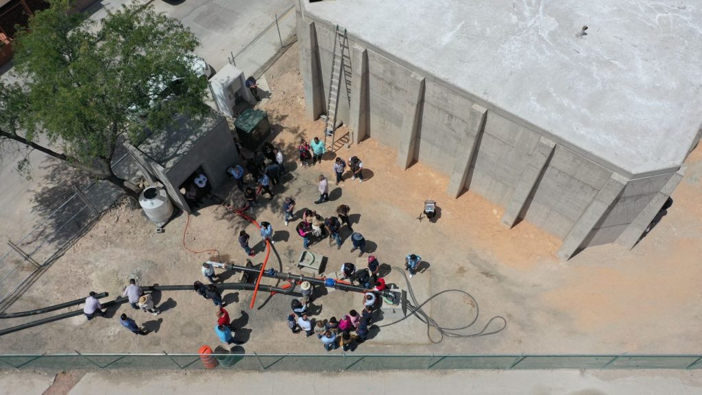 Este pozo de agua está perforado a 700 metros de profundidad, cuenta con un contenedor capaz de almacenar hasta 750 mil litros de agua.
