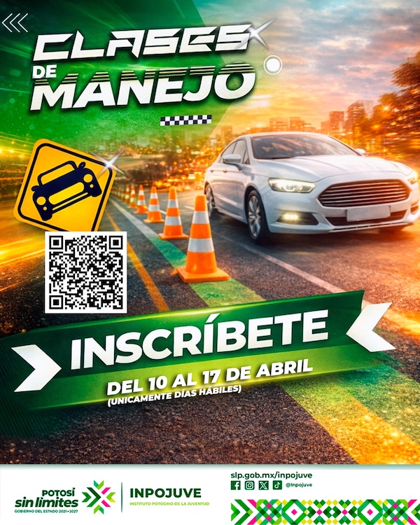 Este programa refleja el cambio que se vive y se siente con herramientas útiles para la vida diaria y el fortalecimiento de la cultura de la responsabilidad al volante. Las clases iniciarán el 27 de abril en modalidad semanal con duración de tres semanas y media, y el 9 de mayo en modalidad sabatina durante cuatro sesiones. Para mayores informes, comunicarse al 444 896 42 95.