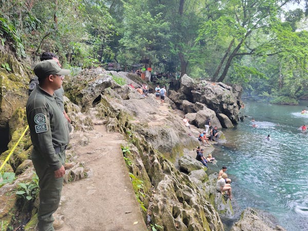 En puntos turísticos de alta afluencia como Cascadas de Micos y el paraje El Conejo, en Ciudad Valles, así como en Tambaque, Tanchachín, La Garita y La Morena, se desplegaron operativos a través de la Guardia Civil Estatal (GCE) dentro del dispositivo Semana Santa Segura 2026, lo que demuestra el cambio que se vive y se siente al garantizar entornos más seguros.