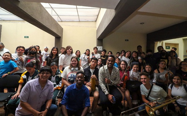 Encabezados por Ethiel Failde, los músicos compartieron una tarde con niños, adolescentes y jóvenes estudiantes, a quienes les compartieron sus experiencias en el ámbito profesional, así como técnicas respecto a la conformación de una orquesta, en el que se dio hasta el tiempo para realizar música.