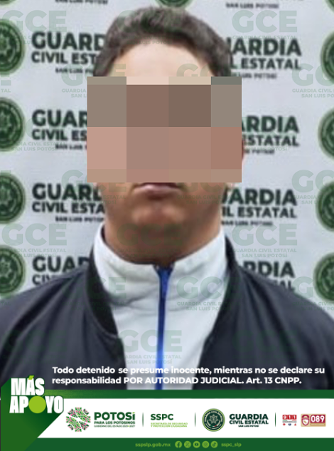 San Luis Potosí, S.L.P.- Elementos de la Guardia Civil Estatal realizaron la detención de un hombre de 32 años que presuntamente cometió abuso sexual en agravio de una joven en la capital potosina.