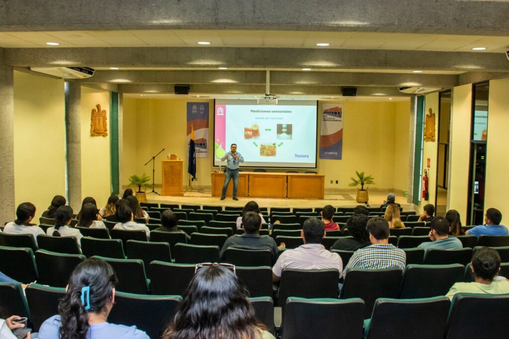 En el marco del Segundo Foro de Temas Selectos de la Industria Alimentaria, realizado en la Facultad de Ciencias Químicas (FCQ) de la Universidad Autónoma de San Luis Potosí (UASLP), se llevó a cabo la conferencia “Sensorial 360: Experiencia de la Ingeniería del Sabor”, impartida por el maestro Héctor Reynoso Ponce, quien introdujo a los asistentes en los principios del análisis sensorial y su aplicación en el desarrollo de productos.