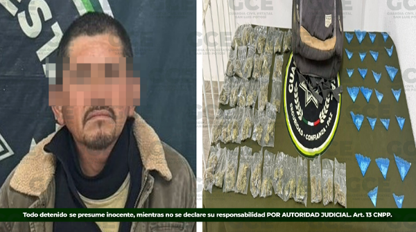 El individuo, junto con la droga asegurada, fue puesto a disposición de la autoridad competente para las investigaciones correspondientes y la definición de su situación legal.Estas acciones forman parte del trabajo permanente de la Guardia Civil Estatal para fortalecer la seguridad y combatir los delitos contra la salud en un Potosí sin límites.