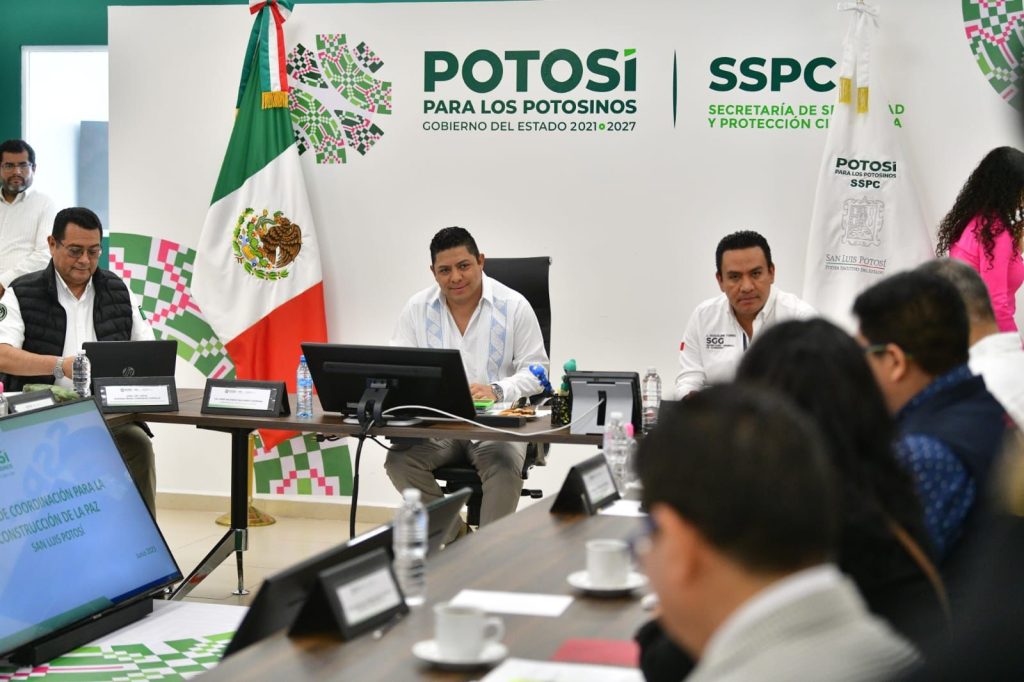 Durante la sesión el gobernador Gallardo Cardona estuvo acompañado por el Secretario General de Gobierno, José Guadalupe Torres Sánchez y el Secretario de Seguridad Estatal, Guzmar Ángel González Castillo, Gallardo Cardona, y pidió a las instituciones de los tres ordenes de Gobierno a no bajar la guardia y seguir diversificando las estrategias en la prevención y combate de los delitos.
