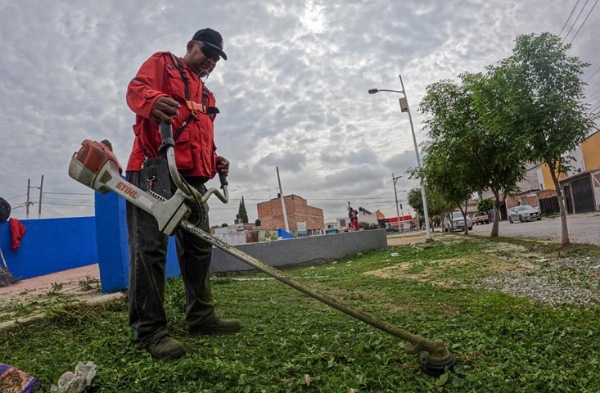 Cuadrillas de trabajadores de la Dirección de Servicios Municipales rehabilitaron el área verde de Ponciano Arriaga Norte.