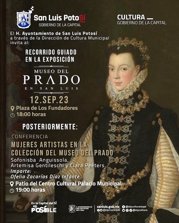 El Gobierno de la Capital invita al público en general, estudiantes de arte y de historia, académicos, a que asistan y disfruten de la conferencia “Mujeres artistas en la colección del Museo del Prado: Sofonisba Anguisola, Artemisa Gentilechi y Clara Peeters”, que será impartida por Ofelia Zacarías Díaz Infante, maestra en historia del arte mexicano por la Universidad Autónoma de San Luis Potosí.