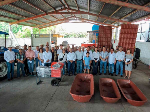 Los equipos y materiales para las y los productores son: paquetes de láminas, bebederos y comederos, calidad de uso rudo para 35 familias, además de 25 molinos de forraje y tres mil costales de fertilizante para 300 familias que cultivan caña, que fueron afectadas por el prolongado estiaje.