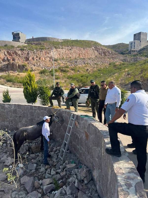 Durante las maniobras participaron la Coordinación Estatal de Protección Civil (CEPC) y la Guardia Civil Estatal (GCE), quienes actuaron con precisión y responsabilidad para liberar al equino y ponerlo a salvo, sin que se registraran riesgos mayores.