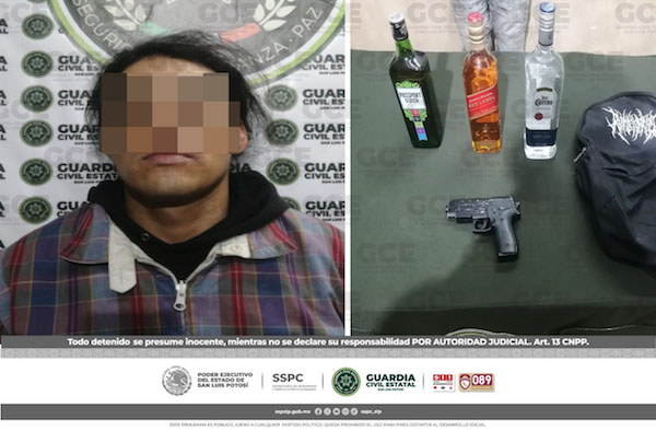 Las fuerzas del orden se trasladaron a la colonia Casanova en la delegación de Villa de Pozos, luego de que se reportara la presencia del presunto ladrón de tiendas de conveniencia, detectando la presencia del presunto identificado como Irving “N” de 26 años en las calles de Saturnino Cedillo y Centenario, siendo detenido al ser señalado del hurto de tres botellas de licor.