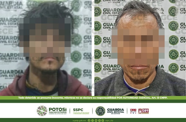 S.L.P.- Derivado de la atención inmediata a dos reportes ciudadanos, sobre posibles casos de allanamiento de inmuebles particulares, agentes de la Guardia Civil Estatal (GCE) detuvieron a dos hombres, como presuntos implicados de este delito.