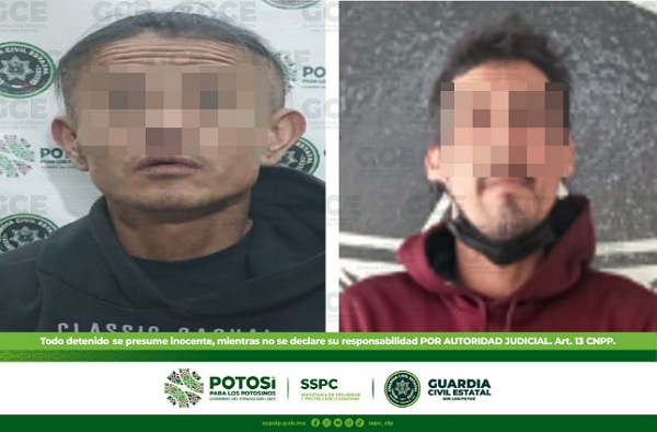 S.L.P.- Derivado de la atención a las llamadas de auxilio atendidas por los Operadores de la Línea de Emergencias 911, efectivos de la Guardia Civil Estatal (GCE) detuvieron a dos hombres, por el presunto delito de violencia familiar.