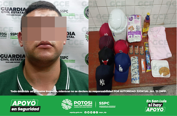 San Luis Potosí, S.L.P.- Una alerta recibida a través del Sistema de Emergencias 911 tuvo como resultado la detención de un individuo por parte de la Guardia Civil Estatal (GCE), el presunto fue denunciado por hurtar mercancía con un valor de más de 3 mil pesos de una tienda comercial.